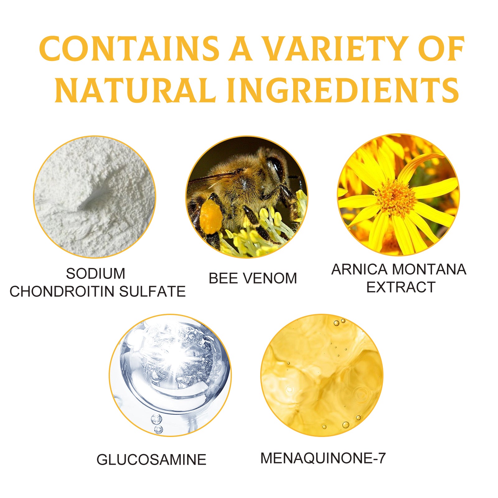 Our bee Venom joint care cream contains glucosamine and vitamin K2. It is carefully formulated to penetrate deep areas of the skin, promote joint health and joint range of motion areas, and may help improve joint flexibility and flexibility. Its application method is simple: 1. Clean the skin and keep it dry. 2. Apply appropriate amount of joint muscle and bone cream to the joints. 3. Gently massage the skin until completely absorbed. And the texture is fresh and non-sticky, easy to apply and absorb, making the skin feel comfortable and dry.