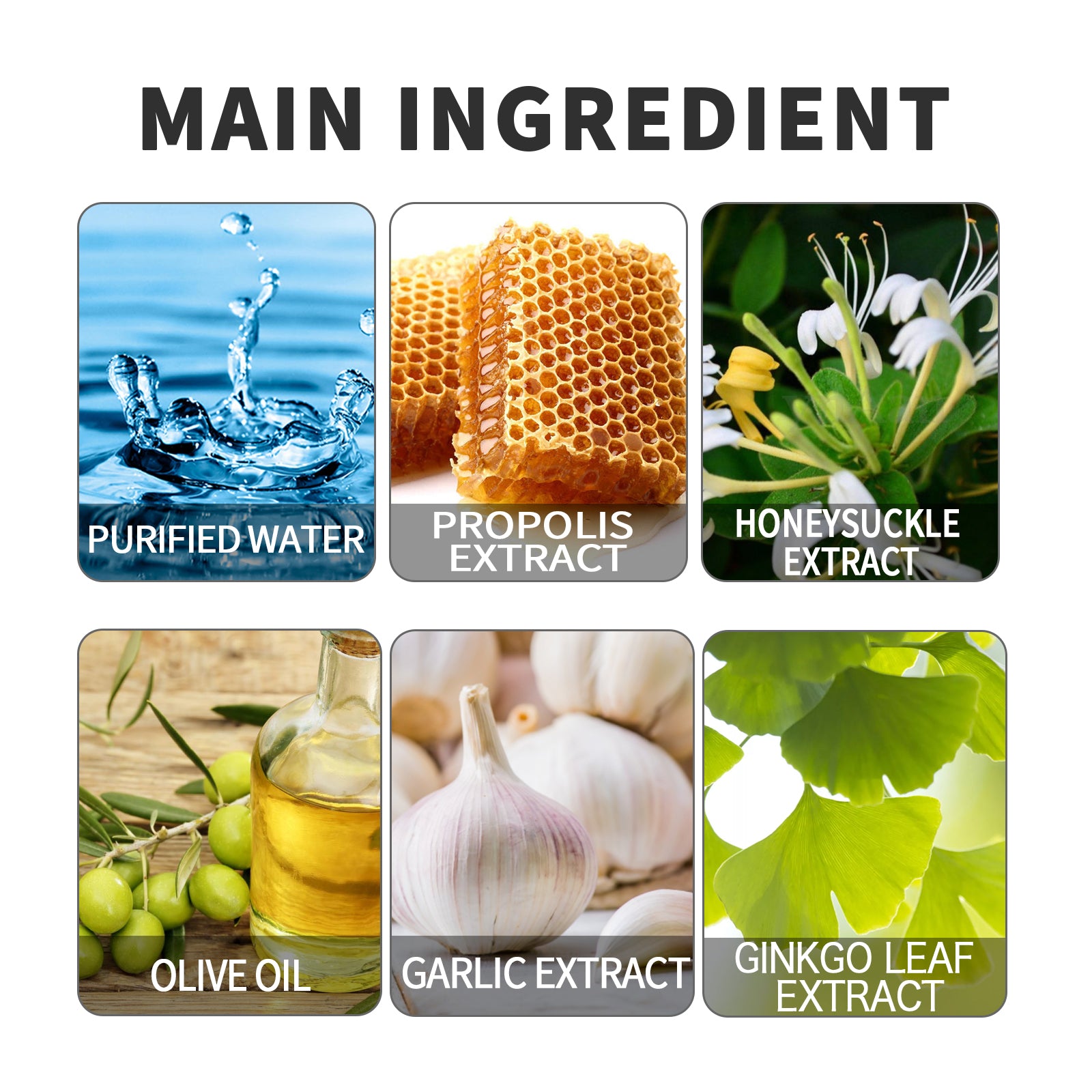 Our Bees Propolis Tinnitus Soothing Spray contains propolis extract, honeysuckle extract, olive oil. It can reduce ear discomfort, effectively relieve the symptoms of tinnitus, clear the deep ear dirt and blockage, and reduce the sensitivity of the ear to noise. It is simple to use: clean and dry the skin inside and outside the ear, lie on your side in a comfortable position, spray 2-3 pumps of spray into the ear facing up, cover the ear with a cotton cloth for about 10 minutes, and finally wipe away the excess liquid with a paper towel. Enhance hearing, soothe ear nerves, relieve tinnitus and ear discomfort.