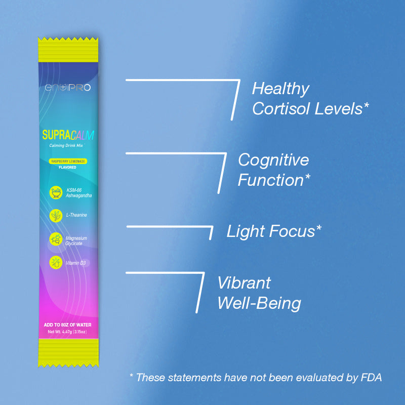 REFRESH, RELAX, REFOCUS : ENVIPRO's SuperCalm helps you easily unwind and refocus anytime, anywhere. Enjoy the vibrant raspberry lemonade flavor in convenient on-the-go packets or a multi-serving canister, while promoting your body's vitality and balance.
