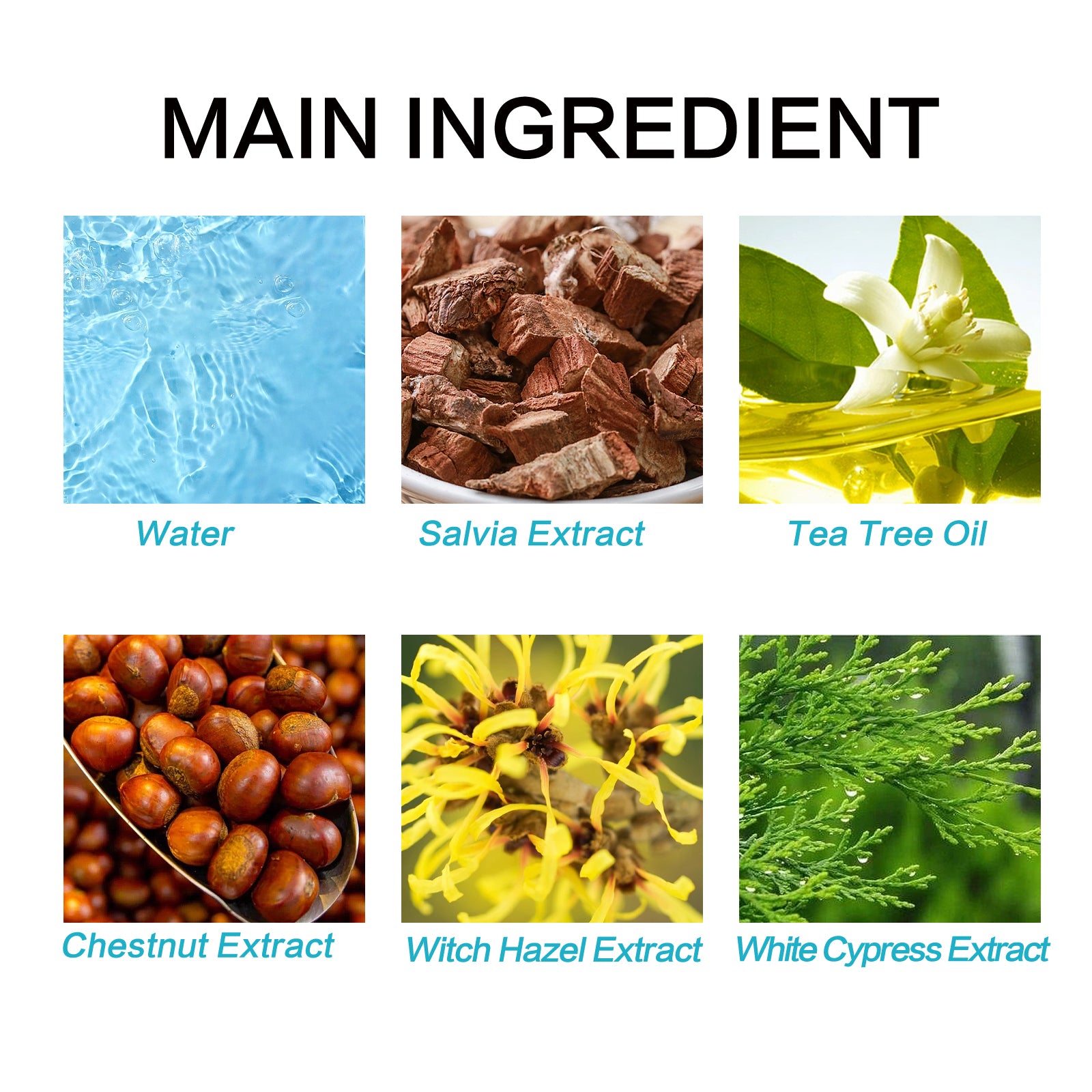 Our foot spray contains salvia miltiorrhiza extract, chestnut extract and white cedar extract. It can be used to repair dry, brittle, discoloration and skin damage caused by fungi, deep skin firming. Rejuvenate dry skin. Its use method is very simple: first clean and dry the skin of the foot, spray evenly at a height of 10-15 cm from the skin, then let it absorb for 1-2 minutes, daily use can get better results, stimulate blood flow through the oxygenate, quickly promote the growth of new healthy skin and nails, and as a measure to prevent future infections.