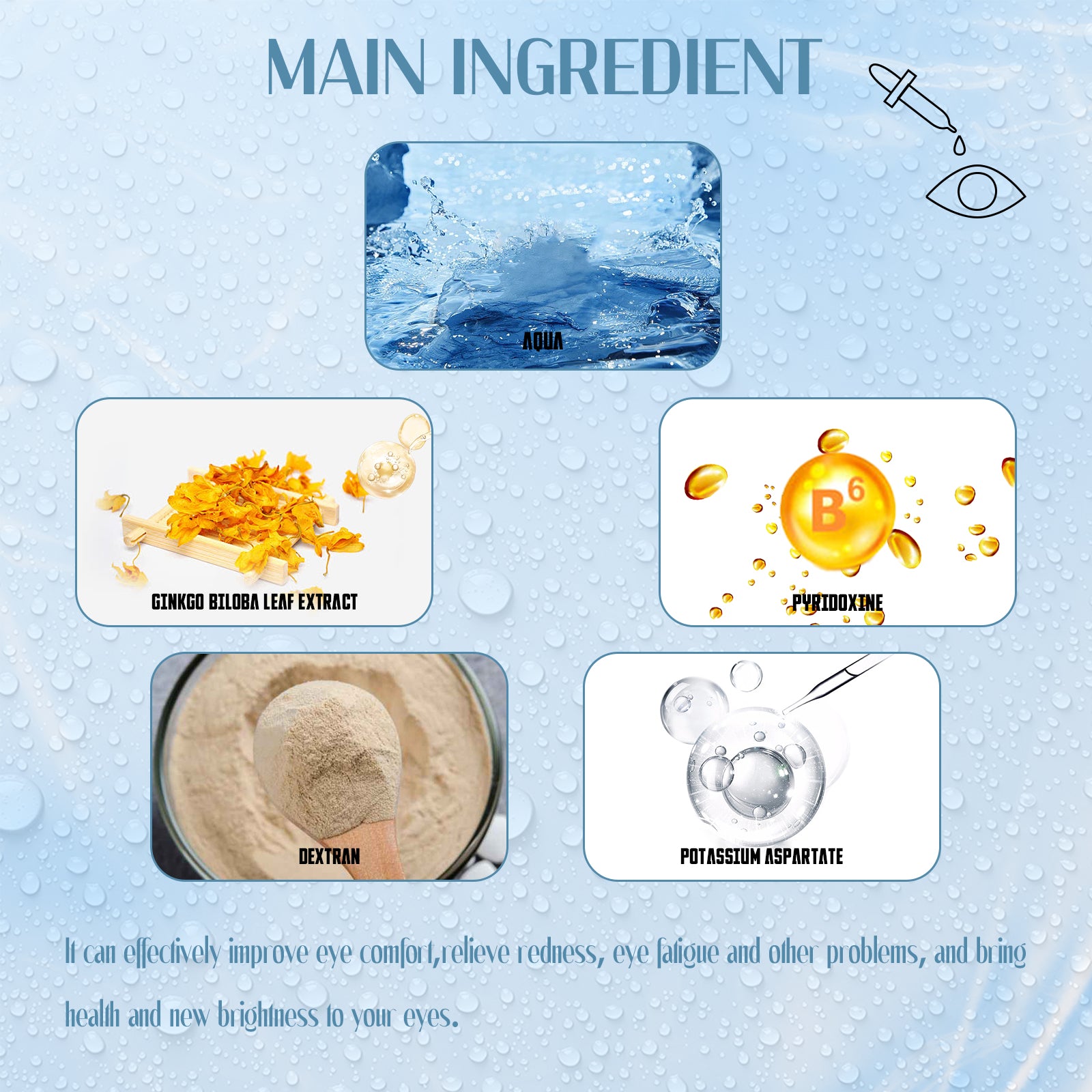 Our Optic Renew Eye Treatment Drops contains vitamin B6, glucan and potassium aspartate. It can effectively protect the eyes, replenish the substances and moisture needed by the eyes, improve eye comfort, relieve eye redness, fatigue and other problems, and bring health and new luster to your eyes. The way to use it is simple: clean your hands before use, tilt your head back or lie flat on your back, pull down your lower eyelids to separate them from your eyeballs, drop the product into your eyes, close your eyes for at least five minutes, and use a tissue or towel to wipe away any droplets of water and tears that come out of your eyes. It can help repair damaged optic nerves, restore your vision, and bring a new light to your eye health.