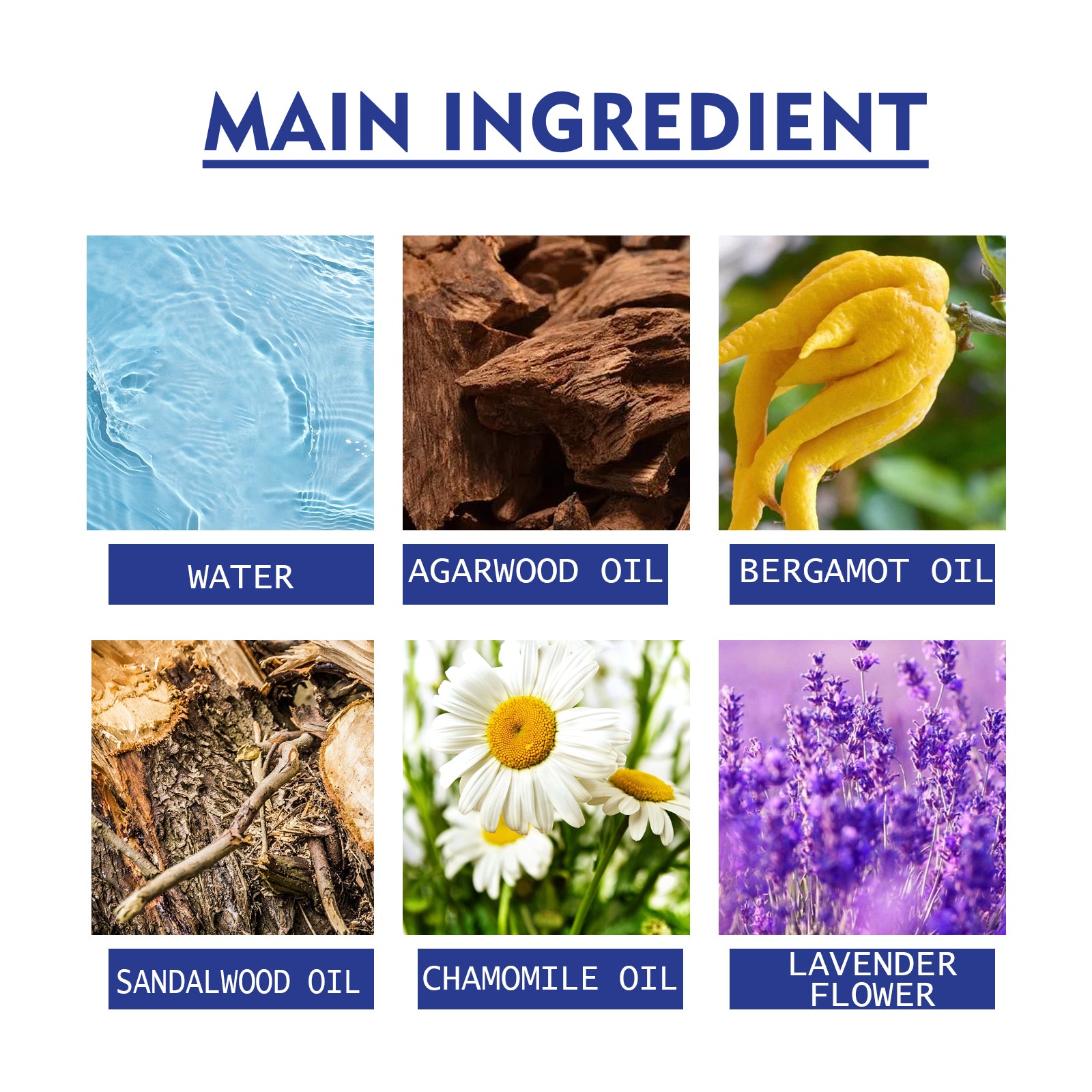 Our sleep spray contains bergamot oil and sandalwood oil. It cleans your pores while you sleep and helps you sleep. The way to use it is simple: 1. Shake the bottle before use. 2. About 30 minutes before bed, spray 4-5 pumps of spray onto pillows and bedding. 3. Get a restful sleep. And you can get enough sleep.
