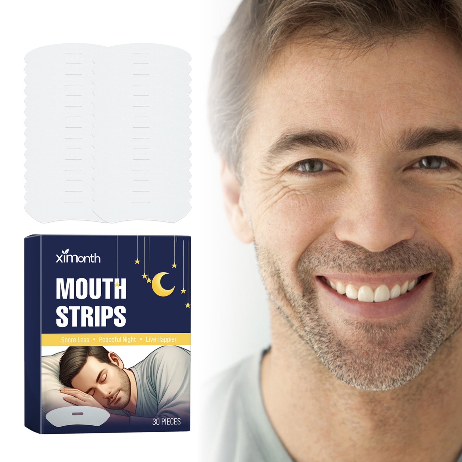 Our sleep patches contain PE. It can reduce snoring and sleep talking, helping you sleep better and feel more energetic the next day. The way to use it is simple: before you go to bed at night, close your mouth, tear off two breath patches, stick them across your mouth, and remove the patches when you wake up. And can protect sleep.